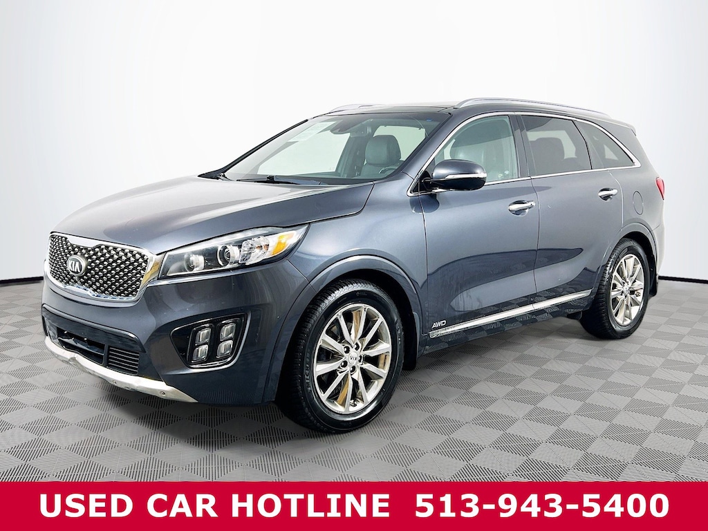 Jeff Wyler Eastgate Auto Mall is honored to offer this charming 2017 Kia Sorento SX Limited in Platinum Graphite. Well equipped with: 10 Speakers, 3.32 Axle Ratio, 3rd row seats: split-bench, 4-Wheel Disc Brakes, ABS brakes, Air Conditioning, Alloy wheels, AM/FM radio: SiriusXM, Anti-whiplash front head restraints, Auto-dimming Rear-View mirror, Automatic temperature control, Brake assist, Bumpers: body-color, Cargo Cover, Cargo Net, CD player, Chrome wheels, Delay-off headlights, Driver door bin, Driver vanity mirror, Dual front impact airbags, Dual front side impact airbags, Electronic Stability Control, Emergency communication system: UVO3, Four wheel independent suspension, Front anti-roll bar, Front Bucket Seats, Front Center Armrest, Front dual zone A/C, Front fog lights, Front reading lights, Fully automatic headlights, Garage door transmitter: HomeLink, Heated & Ventilated Front Bucket Seats, Heated door mirrors, Heated front seats, Heated rear seats, Heated steering wheel, High-Intensity Discharge Headlights, Illuminated entry, Leather steering wheel, Low tire pressure warning, Memory seat, Mudguards: front & rear, Nappa Leather Seat Trim, Navigation System, Occupant sensing airbag, Outside temperature display, Overhead airbag, Overhead console, Panic alarm, Passenger door bin, Passenger vanity mirror, Power door mirrors, Power driver seat, Power Liftgate, Power moonroof, Power passenger seat, Power steering, Power windows, Radio: AVN 4.0 Navigation System, Rear air conditioning, Rear anti-roll bar, Rear Parking Sensors, Rear reading lights, Rear seat center armrest, Rear window defroster, Rear window wiper, Remote keyless entry, Roof rack: rails only, Security system, Speed control, Speed-sensing steering, Split folding rear seat, Spoiler, Steering wheel mounted audio controls, SXL Black Metallic Nappa Leather Seat Trim, Tachometer, Telescoping steering wheel, Tilt steering wheel, Traction control, Trip computer, Turn signal indicator mirrors, Variably intermittent wipers, Ventilated front seats, Wheel Locks, and Wheels: 19" x 7.5 10-Spoke Chrome Alloy. Clean CARFAX. Awards: * 2017 KBB.com 10 Most Awarded Brands Ask about available certifications. Used vehicles 10 years of age or newer with less than 100,000 miles are eligible for the Wyler Assurance Program, but eligible vehicles must pass our reconditioning process and multi-point inspection. Provided the vehicle passes inspection, vehicles will be eligible for the 6 month/6,000 mile limited warranty. The 6 month/6,000 mile limited warranty is NOT available on AS-IS vehicles, wholesale vehicles, lease buyback/pass-thru vehicles or un-inspected vehicles. Note that this program can also apply to vehicles where the remaining factory coverage is less than 6 months or 6,000 miles. Please check the Federal Trade Commission (FTC) Buyers guide on the vehicle for full details as to whether or not warranty coverage may apply. Contact Dealer for additional details. The Wyler Assurance 6 month/6,000 Mile limited warranty ends 6 months from the date of the Retail Purchase Agreement (BUYERS ORDER) or when the vehicle's odometer registers 6,000 additional miles to the mileage listed on the BUYERS ORDER, whichever comes first. Your Deductible - The warranty holder on your contract pays the first $100 of each covered repair.
