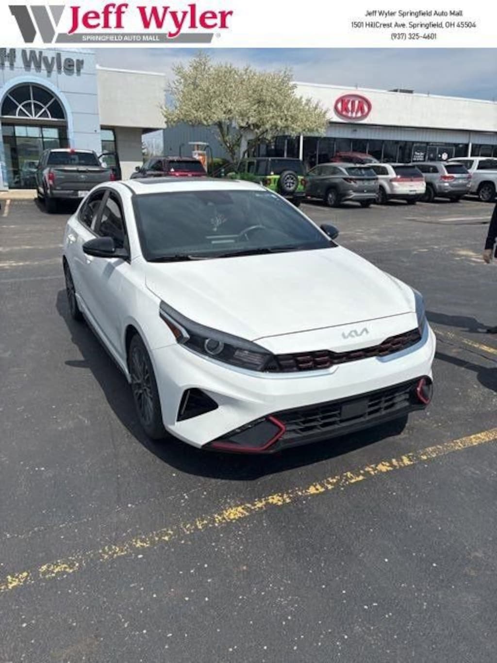 Jeff Wyler Springfield Auto Mall is pumped up to offer this fantastic-looking 2023 Kia Forte GT-Line in Snow White Pearl. Well equipped with: GT-Line Premium Package (Electronic Parking Brake (EPB), Forward Collision Avoidance-Assist - Cyclist, LED Interior Lighting, Navigation-Based Smart Cruise Control (NSCC), Power Sunroof, Radio: harman kardon Premium Audio, Smart Cruise Control w/Stop & Go, and Wireless Charging), GT-Line Sport Premium Package (10-Way Power Driver's Seat, Heated & Ventilated Front Seats, Rear AC Vent, Rear USB Charger, and SynTex Seat Trim), 17 x 7.0J Alloy Wheels, 4-Wheel Disc Brakes, 6 Speakers, ABS brakes, Air Conditioning, Alloy wheels, AM/FM radio: SiriusXM, Apple CarPlay & Android Auto, Auto High-beam Headlights, Automatic temperature control, Brake assist, Bumpers: body-color, Cloth & SynTex Seat Trim, Delay-off headlights, Driver door bin, Driver vanity mirror, Dual front impact airbags, Dual front side impact airbags, Electronic Stability Control, Emergency communication system, Exterior Parking Camera Rear, Front anti-roll bar, Front Bucket Seats, Front Center Armrest, Front dual zone A/C, Front fog lights, Front reading lights, Front wheel independent suspension, Fully automatic headlights, Heated door mirrors, Illuminated entry, Leather Shift Knob, Leather steering wheel, Low tire pressure warning, Navigation System, Occupant sensing airbag, Outside temperature display, Overhead airbag, Overhead console, Panic alarm, Passenger door bin, Passenger vanity mirror, Power door mirrors, Power steering, Power windows, Radio data system, Radio: 10.25 Display Audio, Rear seat center armrest, Rear window defroster, Remote keyless entry, Security system, Speed control, Split folding rear seat, Spoiler, Sport steering wheel, Steering wheel mounted audio controls, Tachometer, Telescoping steering wheel, Tilt steering wheel, Traction control, Trip computer, Turn signal indicator mirrors, and Variably intermittent wipers. Ask about available certifications. Used vehicles 10 years of age or newer with less than 100,000 miles are eligible for the Wyler Assurance Program, but eligible vehicles must pass our reconditioning process and multi-point inspection. Provided the vehicle passes inspection, vehicles will be eligible for the 6 month/6,000 mile limited warranty. The 6 month/6,000 mile limited warranty is NOT available on AS-IS vehicles, wholesale vehicles, lease buyback/pass-thru vehicles or un-inspected vehicles. Note that this program can also apply to vehicles where the remaining factory coverage is less than 6 months or 6,000 miles. Please check the Federal Trade Commission (FTC) Buyers guide on the vehicle for full details as to whether or not warranty coverage may apply. Contact Dealer for additional details. The Wyler Assurance 6 month/6,000 Mile limited warranty ends 6 months from the date of the Retail Purchase Agreement (BUYERS ORDER) or when the vehicle's odometer registers 6,000 additional miles to the mileage listed on the BUYERS ORDER, whichever comes first. Your Deductible - The warranty holder on your contract pays the first $100 of each covered repair.
