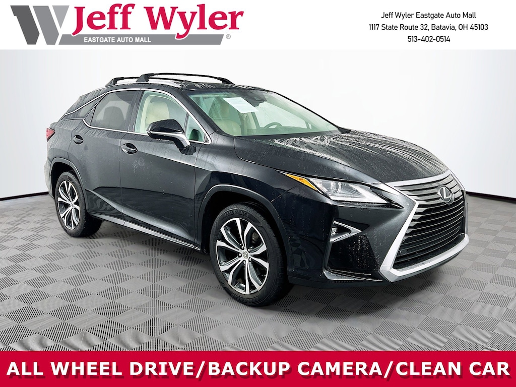 Jeff Wyler Eastgate Auto Mall is pleased to offer this gorgeous 2017 Lexus RX 350 F Sport in Obsidian. Well equipped with: ABS brakes, Active Cruise Control, Alloy wheels, Compass, Electronic Stability Control, Front dual zone A/C, Heated & Ventilated Front Bucket Seats, Heated door mirrors, Heated front seats, Illuminated entry, Low tire pressure warning, Power Liftgate, Remote keyless entry, Traction control, 2.277 Axle Ratio, 4-Wheel Disc Brakes, 9 Speakers, Adaptive suspension, Air Conditioning, Aluminum Roof Rails, AM/FM radio: SiriusXM, Anti-whiplash front head restraints, Auto High-beam Headlights, Auto tilt-away steering wheel, Auto-dimming door mirrors, Auto-dimming Rear-View mirror, Automatic temperature control, Backup Monitor, Bumpers: body-color, CD player, Delay-off headlights, Driver door bin, Driver vanity mirror, Dual front impact airbags, Dual front side impact airbags, Emergency communication system: Safety Connect, Exterior Parking Camera Rear, F Sport Heated Steering Wheel w/Paddle Shifters, F Sport Leather, F Sport Wheel Caps, Four wheel independent suspension, Front anti-roll bar, Front Bucket Seats, Front Center Armrest, Front fog lights, Front reading lights, Fully automatic headlights, Garage door transmitter: HomeLink, Heated steering wheel, Illuminated Aluminum Door Trim, Knee airbag, Leather Shift Knob, Leather steering wheel, Memory seat, Occupant sensing airbag, Outside temperature display, Overhead airbag, Overhead console, Panic alarm, Passenger door bin, Passenger vanity mirror, Power door mirrors, Power driver seat, Power passenger seat, Power steering, Power windows, Radio data system, Radio: AM/FM/CD Lexus Display Audio, Rain sensing wipers, Rear anti-roll bar, Rear reading lights, Rear seat center armrest, Rear side impact airbag, Rear window defroster, Rear window wiper, Roof rack: rails only, Security system, Speed control, Speed-sensing steering, Split folding rear seat, Spoiler, Steering wheel memory, Steering wheel mounted audio controls, Tachometer, Telescoping steering wheel, Tilt steering wheel, Trip computer, Turn signal indicator mirrors, Variably intermittent wipers, Ventilated front seats, and Wheels: 20" x 8" F Sport w/Dark Metallic Finish. Awards: * 2017 KBB.com Best Resale Value Awards * 2017 KBB.com 10 Best Luxury SUVs * 2017 KBB.com Brand Image Awards Ask about available certifications. Used vehicles 10 years of age or newer with less than 100,000 miles are eligible for the Wyler Assurance Program, but eligible vehicles must pass our reconditioning process and multi-point inspection. Provided the vehicle passes inspection, vehicles will be eligible for the 6 month/6,000 mile limited warranty. The 6 month/6,000 mile limited warranty is NOT available on AS-IS vehicles, wholesale vehicles, lease buyback/pass-thru vehicles or un-inspected vehicles. Note that this program can also apply to vehicles where the remaining factory coverage is less than 6 months or 6,000 miles. Please check the Federal Trade Commission (FTC) Buyers guide on the vehicle for full details as to whether or not warranty coverage may apply. Contact Dealer for additional details. The Wyler Assurance 6 month/6,000 Mile limited warranty ends 6 months from the date of the Retail Purchase Agreement (BUYERS ORDER) or when the vehicle's odometer registers 6,000 additional miles to the mileage listed on the BUYERS ORDER, whichever comes first. Your Deductible - The warranty holder on your contract pays the first $100 of each covered repair.