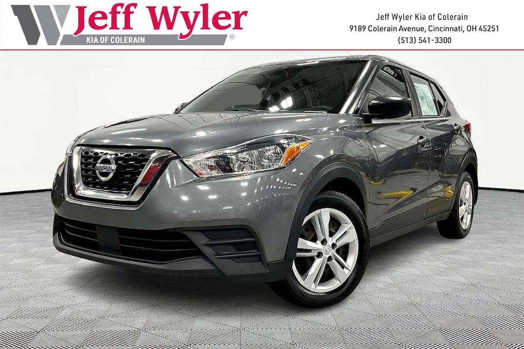 Jeff Wyler Kia of Colerain is honored to offer this superb 2020 Nissan Kicks S in Gun Metallic. 16" Steel Wheels w/Full Covers, 3.927 Axle Ratio, 6 Speakers, ABS brakes, Air Conditioning, AM/FM radio, Auto High-beam Headlights, Blind Spot Warning, Brake assist, Bumpers: body-color, Carpeted Floor Mats w/Cargo Mat, Center Armrest w/Storage, Cloth Seat Trim, Driver door bin, Driver vanity mirror, Driver's Seat Mounted Armrest, Dual front impact airbags, Dual front side impact airbags, Electronic Stability Control, Front anti-roll bar, Front Bucket Seats, Front reading lights, Front wheel independent suspension, Fully automatic headlights, Illuminated entry, Knee airbag, Low tire pressure warning, Occupant sensing airbag, Outside temperature display, Overhead airbag, Panic alarm, Passenger door bin, Passenger vanity mirror, Power door mirrors, Power steering, Power windows, Radio data system, Radio: AM/FM Audio System, Rear Parking Sensors, Rear reading lights, Rear side impact airbag, Rear window defroster, Rear window wiper, Remote keyless entry, Speed control, Splash Guards Grain (4 Piece), Split folding rear seat, Sport steering wheel, Steering wheel mounted audio controls, Tachometer, Telescoping steering wheel, Tilt steering wheel, Traction control, Trip computer, and Variably intermittent wipers Our PRE-OWNED vehicles are put through a rigorous 167- POINT QUALITY ASSURANCE INSPECTION along with an average amount of over $1,400.00 SPENT to recondition each vehicle so we can be sure to deliver you the highest quality vehicle like you deserve! ***ONLINE PRICE DOES NOT INCLUDE WYLER FAMILY FIRST PACKAGE***