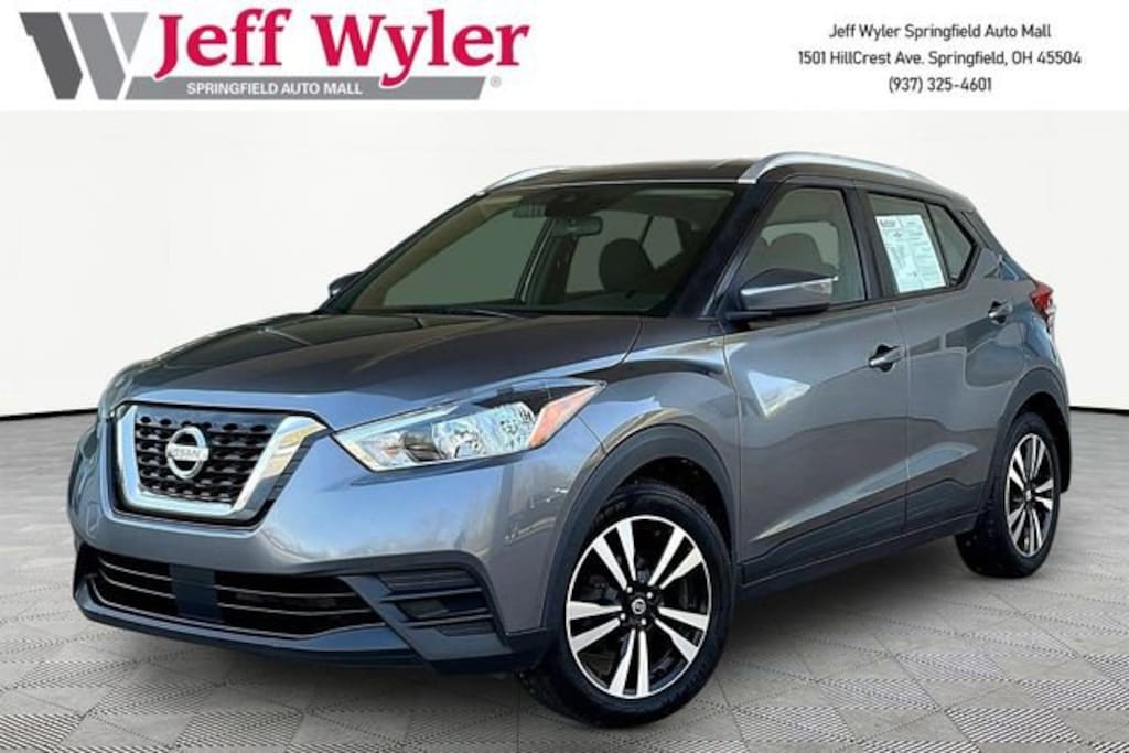 Jeff Wyler Springfield Auto Mall is excited to offer this outstanding 2020 Nissan Kicks SV in Gun Metallic. Well equipped with: 17 Alloy Wheels, 3.927 Axle Ratio, 6 Speakers, ABS brakes, Air Conditioning, Alloy wheels, AM/FM radio: SiriusXM, Auto High-beam Headlights, Automatic temperature control, Blind Spot Warning, Brake assist, Bumpers: body-color, Carpeted Floor Mats w/Cargo Mat, Center Armrest w/Storage, Cloth Seat Trim, Compass, Driver door bin, Driver vanity mirror, Driver's Seat Mounted Armrest, Dual front impact airbags, Dual front side impact airbags, Electronic Stability Control, Front anti-roll bar, Front Bucket Seats, Front reading lights, Front wheel independent suspension, Fully automatic headlights, Heated door mirrors, Illuminated entry, Knee airbag, Low tire pressure warning, NissanConnect featuring Apple CarPlay and Android Auto, Occupant sensing airbag, Outside temperature display, Overhead airbag, Panic alarm, Passenger door bin, Passenger vanity mirror, Power door mirrors, Power steering, Power windows, Radio data system, Radio: AM/FM Audio System, Rear Parking Sensors, Rear reading lights, Rear side impact airbag, Rear window defroster, Rear window wiper, Remote keyless entry, Roof rack: rails only, Speed control, Splash Guards Grain (4 Piece), Split folding rear seat, Sport steering wheel, Steering wheel mounted audio controls, Tachometer, Telescoping steering wheel, Tilt steering wheel, Traction control, Trip computer, and Variably intermittent wipers. Awards:* 2020 KBB.com 10 Coolest New Cars Under $20,000 Ask about available certifications. Used vehicles 10 years of age or newer with less than 100,000 miles are eligible for the Wyler Assurance Program, but eligible vehicles must pass our reconditioning process and multi-point inspection. Provided the vehicle passes inspection, vehicles will be eligible for the 6 month/6,000 mile limited warranty. The 6 month/6,000 mile limited warranty is NOT available on AS-IS vehicles, wholesale vehicles, lease buyback/pass-thru vehicles or un-inspected vehicles. Note that this program can also apply to vehicles where the remaining factory coverage is less than 6 months or 6,000 miles. Please check the Federal Trade Commission (FTC) Buyers guide on the vehicle for full details as to whether or not warranty coverage may apply. Contact Dealer for additional details. The Wyler Assurance 6 month/6,000 Mile limited warranty ends 6 months from the date of the Retail Purchase Agreement (BUYERS ORDER) or when the vehicle's odometer registers 6,000 additional miles to the mileage listed on the BUYERS ORDER, whichever comes first. Your Deductible - The warranty holder on your contract pays the first $100 of each covered repair.