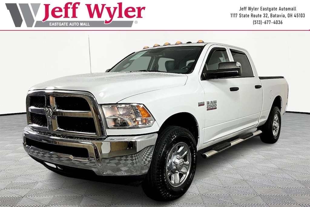 Jeff Wyler Eastgate Auto Mall is pumped up to offer this outstanding-looking 2018 Ram 2500 Tradesman in Bright White Clearcoat. Well equipped with: Chrome Appearance Group (Bright Front Bumper, Bright Grille, Bright Rear Bumper, and Wheels: 18" x 8.0" Steel Chrome Clad), Popular Equipment Group (1-Yr SiriusXM Radio Service, Carpet Floor Covering, For More Info, Call 800-643-2112, Front & Rear Floor Mats, Remote Keyless Entry, and SiriusXM Satellite Radio), Quick Order Package 22A Tradesman (Front Armrest w/Cupholders and Storage Tray), 17" x 7.5" Steel Styled Wheels, 180 Amp Alternator, 4-Wheel Disc Brakes, 40/20/40 Split Bench Seat, 6 Speakers, ABS brakes, Air Conditioning, AM/FM radio, Anti-Spin Differential Rear Axle, Auto-dimming Rear-View mirror, Black Exterior Mirrors, Brake assist, Center Hub, Clearance Lamps, Delay-off headlights, Driver door bin, Dual front impact airbags, Dual front side impact airbags, Electronic Stability Control, Electronically Controlled Throttle, Exterior Mirrors Courtesy Lamps, Exterior Mirrors w/Heating Element, Exterior Mirrors w/Supplemental Signals, Front anti-roll bar, Front Center Armrest, Fully automatic headlights, Heated door mirrors, Heavy Duty Vinyl 40/20/40 Split Bench Seat, Hemi Badge, Locking Tailgate, Low tire pressure warning, Manual Adjust Seats, Media Hub (USB, AUX), Next Generation Engine Controller, Occupant sensing airbag, Overhead airbag, ParkView Rear Back-Up Camera, Passenger door bin, Power Black Trailer Tow Mirrors, Power door mirrors, Power steering, Power windows, Radio data system, Radio: 3.0, Rear Folding Seat, Rear step bumper, Speed control, Spray In Bedliner, Tachometer, Tilt steering wheel, Tip Start, Traction control, Trailer Brake Control, Trailer Tow Mirrors, Variably intermittent wipers, Vendor Painted Cargo Box Tracking, and Voltmeter. CARFAX One-Owner. Clean CARFAX. Ask about available certifications. Used vehicles 10 years of age or newer with less than 100,000 miles are eligible for the Wyler Assurance Program, but eligible vehicles must pass our reconditioning process and multi-point inspection. Provided the vehicle passes inspection, vehicles will be eligible for the 6 month/6,000 mile limited warranty. The 6 month/6,000 mile limited warranty is NOT available on AS-IS vehicles, wholesale vehicles, lease buyback/pass-thru vehicles or un-inspected vehicles. Note that this program can also apply to vehicles where the remaining factory coverage is less than 6 months or 6,000 miles. Please check the Federal Trade Commission (FTC) Buyers guide on the vehicle for full details as to whether or not warranty coverage may apply. Contact Dealer for additional details. The Wyler Assurance 6 month/6,000 Mile limited warranty ends 6 months from the date of the Retail Purchase Agreement (BUYERS ORDER) or when the vehicle's odometer registers 6,000 additional miles to the mileage listed on the BUYERS ORDER, whichever comes first. Your Deductible - The warranty holder on your contract pays the first $100 of each covered repair.