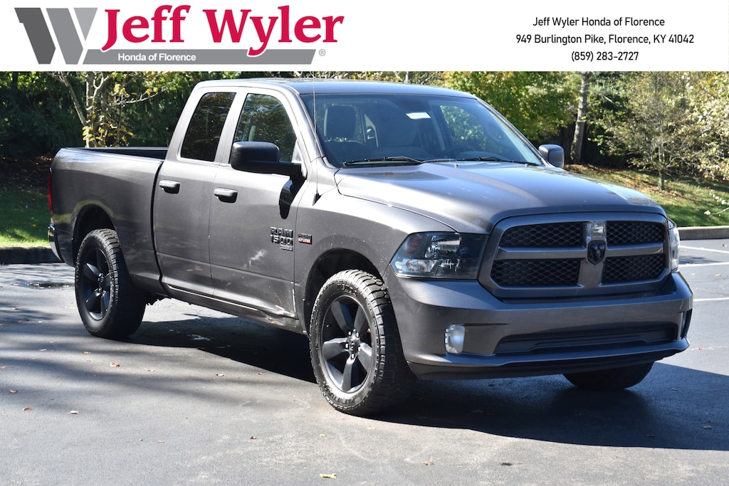 Recent Arrival! CARFAX One-Owner. ONE OWNER, REAR BACKUP CAMERA, ALL WHEEL DRIVE, PASSED OUR SAFETY INSPECTION, SERVICE RECORDS AVAILABLE, 1-Year SiriusXM Radio Service, 17" x 7" Aluminum Wheels, 17" x 7" Steel Wheels, 3.21 Rear Axle Ratio, 4-Wheel Disc Brakes, 4x4 Flat Black Badge, 6 Speakers, ABS brakes, Active Grille Shutters, Air Conditioning, AM/FM radio, Audio Jack Input for Mobile Devices, Auto-dimming Rear-View mirror, Black Exterior Truck Badging, Black Headlamp Bezels, Black RAM Head Tailgate Badge, Body Color Front Fascia, Body Color Grille, Body Color Grille w/Black RAM's Head, Body Color Rear Bumper w/Step Pads, Brake assist, Carpet Floor Covering, Center Hub, Cloth 40/20/40 Bench Seat, Delay-off headlights, Delete Class IV Receiver Hitch, Delete Spray In Bedliner, Driver door bin, Dual front impact airbags, Dual front side impact airbags, Electronic Shift, Electronic Stability Control, Express Black Accent Package, Express Value Package, Exterior Mirrors w/Heating Element, For More Info, Call 800-643-2112, Front anti-roll bar, Front Center Armrest, Front Floor Mats, Front Fog Lamps, Front wheel independent suspension, Fully automatic headlights, GPS Antenna Input, Heated door mirrors, Heavy Duty Vinyl 40/20/40 Split Bench Seat, Integrated Voice Command w/Bluetooth, Low tire pressure warning, Manual Adjust Seats, Manufacturer's Statement of Origin, Media Hub (USB, AUX), No Satellite Coverage w/AK/HI/PR/VI/GU, Occupant sensing airbag, Overhead airbag, Overhead Console, ParkView Rear Back-Up Camera, Passenger door bin, Power door mirrors, Power steering, Power windows, Quick Order Package 27J Express, Radio data system, Radio: 3.0, Radio: Uconnect 3 w/5" Display, Ram 1500 Express, Rear anti-roll bar, Rear Floor Mats, Rear step bumper, Remote Keyless Entry w/All-Secure, Remote USB Port, Semi-Gloss Black Hub, SiriusXM Satellite Radio, Speed control, Tachometer, Temperature & Compass Gauge, Tilt steering wheel, Tip Start, Traction control, Variably intermittent wipers, Voltmeter, Wheels: 20" x 8" Aluminum Chrome Clad, Wheels: 20" x 8" Semi-Gloss Black Aluminum.