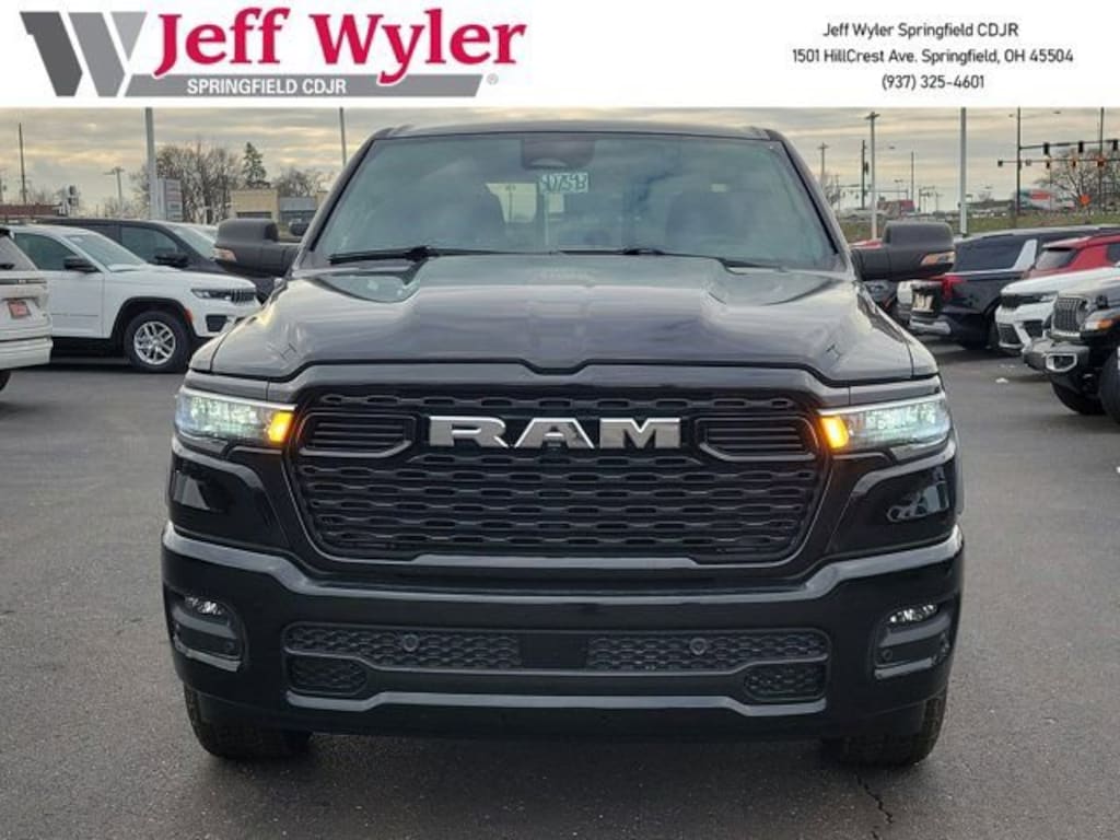 Priced below KBB Fair Purchase Price! Jeff Wyler Springfield Auto Mall is excited to offer this great-looking 2025 Ram 1500 Big Horn/Lone Star in Diamond Black Crystal Pearlcoat. Well equipped with: Big Horn Level 1 Equipment Group (115V Auxiliary Power Outlet, 2nd Row In Floor Storage Bins, 400W Inverter, Auto Power-Folding Mirrors, Auto-Dimming Exterior Driver Mirror, Auto-Dimming Rear-View Mirror, Black Exterior Mirrors, Black Premium Power Mirrors, Convex Wide-Angle Exterior Mirror Insert, Exterior Mirrors Courtesy Lamps, Exterior Mirrors w/Heating Element, Exterior Mirrors w/Supplemental Signals, Glove Box Lamp, Heated Front Seats, Heated Steering Wheel, Leather Wrapped Steering Wheel, Power 2-Way Driver Lumbar Adjust, Power Adjust 8-Way Driver Seat, Power Adjustable Pedals, Rear Power Sliding Window, Rear Window Defroster, Steering Wheel Mounted Audio Controls, Sun Visors w/Illuminated Vanity Mirrors, and Universal Garage Door Opener), Quick Order Package 23Z Big Horn (Big Horn Badge), Sport Appearance Package (3 Rear Seat Head Restraints, 4 Way Front Headrests, Black Interior Accents, Body Color Door Handles, Body Color Front Bumper, Body Color Rear Bumper w/Step Pads, Body Color Tailgate Handle, Bucket Seats, Deluxe Cloth Bucket Seats, Front Seat Back Map Pockets, Full Length Floor Console, Grille Surround 1 Body Color Texture 1 Black, Manual Adjust 4-Way Front Passenger Seat, RAM Grille Badge - Chrome, Rear 60/40 Folding Seat, and Rear Center Armrest), 3.21 Rear Axle Ratio, 4-Wheel Disc Brakes, 4G LTE Wi-Fi Hot Spot, 6 Speakers, ABS brakes, Air Conditioning, Alloy wheels, AM/FM radio, Anti-Spin Differential Rear Axle, Apple CarPlay/Android Auto, Auto High-beam Headlights, Brake assist, Bumpers: chrome, Cloth Bench Seat, Compass, Connectivity - US/Canada, Delay-off headlights, Driver door bin, Dual front impact airbags, Dual front side impact airbags, Electronic Stability Control, Front anti-roll bar, Front Center Armrest w/Storage, Front fog lights, Front License Plate Bracket, Front reading lights, Front wheel independent suspension, Fully automatic headlights, GPS Antenna Input, Heated door mirrors, Illuminated entry, Integrated Voice Command w/Bluetooth, Low tire pressure warning, Manual Folding Exterior Mirrors, MOPAR Front & Rear Rubber Floor Mats, Occupant sensing airbag, Outside temperature display, Overhead airbag, Overhead console, Panic alarm, ParkView Rear Back-Up Camera, Passenger door bin, Passenger vanity mirror, Power door mirrors, Power steering, Power windows, Radio data system, Radio: Uconnect 5 W w/8.4 Display, Rear anti-roll bar, Rear seat center armrest, Rear step bumper, Remote keyless entry, Speed control, Split folding rear seat, Supplier Part Tracking (J-1), Tachometer, Telescoping steering wheel, Tilt steering wheel, Traction control, Trailer Brake Control, Trip computer, USB Host Flip, Variably intermittent wipers, Voltmeter, and Wheels: 18 x 8 Cast-Aluminum Painted. 19/24 City/Highway MPGWyler Family First Package Includes: NanoCure Appearance Protection: Exterior & Interior Chemical Sealant Applied to Protect Against Environmental Hazards (7 Year Warranty Coverage). Pulse- Rear end Collision Avoidance System Theft Deterrent Strategy gives you 5 Years of Coverage against vehicle Theft, Offering up to a $5,000 benefit.