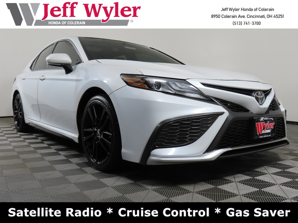 Jeff Wyler Honda of Colerain is delighted to offer this terrific 2021 Toyota Camry XSE in Wind Chill Pearl. Well equipped with: 4-Wheel Disc Brakes, 6 Speakers, ABS brakes, Air Conditioning, Alloy wheels, AM/FM radio: SiriusXM, Apple CarPlay/Android Auto, Auto High-beam Headlights, Auto-dimming Rear-View mirror, Automatic temperature control, Brake assist, Bumpers: body-color, Delay-off headlights, Driver door bin, Driver vanity mirror, Dual front impact airbags, Dual front side impact airbags, Electronic Stability Control, Emergency communication system: Safety Connect with 1-year trial, Exterior Parking Camera Rear, Four wheel independent suspension, Front anti-roll bar, Front Bucket Seats, Front Center Armrest, Front dual zone A/C, Front reading lights, Fully automatic headlights, Garage door transmitter: HomeLink, Heated door mirrors, Heated front seats, Illuminated entry, Knee airbag, Low tire pressure warning, Multi-Stage Heated Front Bucket Seats, Occupant sensing airbag, Outside temperature display, Overhead airbag, Overhead console, Panic alarm, Passenger door bin, Passenger vanity mirror, Perforated Leather Seat Trim, Power door mirrors, Power driver seat, Power passenger seat, Power steering, Power windows, Radio data system, Radio: AM/FM/HD Audio Plus, Rear anti-roll bar, Rear reading lights, Rear seat center armrest, Rear side impact airbag, Rear window defroster, Remote keyless entry, Security system, Speed control, Speed-sensing steering, Split folding rear seat, Spoiler, Steering wheel mounted audio controls, Tachometer, Telescoping steering wheel, Tilt steering wheel, Traction control, Trip computer, Turn signal indicator mirrors, Variably intermittent wipers, and Wheels: 8.0J x 19" Black Machined-Finish Alloy.