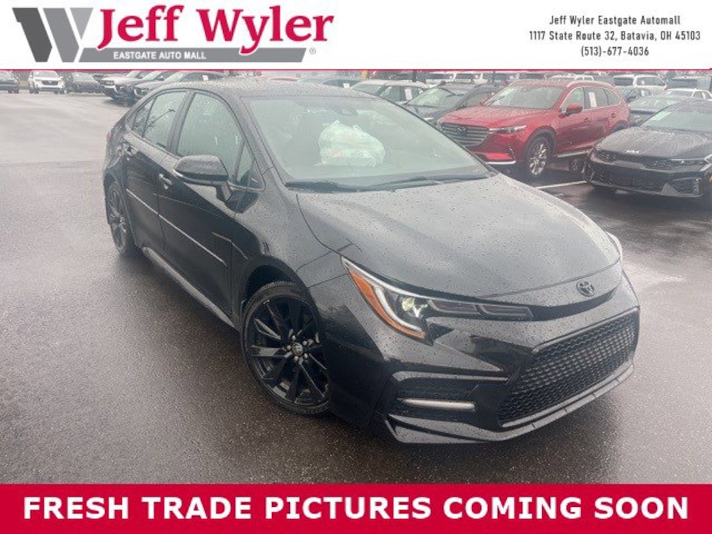 Jeff Wyler Eastgate Auto Mall is honored to offer this great-looking 2021 Toyota Corolla SE in Black Sand Pearl. Well equipped with: 18" Machined Alloy Wheels, 4-Wheel Disc Brakes, 6 Speakers, ABS brakes, Air Conditioning, Alloy wheels, AM/FM radio: SiriusXM, Apple CarPlay/Android Auto, Auto High-beam Headlights, Automatic temperature control, Brake assist, Bumpers: body-color, Delay-off headlights, Driver door bin, Driver vanity mirror, Dual front impact airbags, Dual front side impact airbags, Electronic Stability Control, Emergency communication system: Safety Connect with 1-year trial, Exterior Parking Camera Rear, Four wheel independent suspension, Front anti-roll bar, Front Bucket Seats, Front Center Armrest, Front reading lights, Front Sport Seats, Fully automatic headlights, Heated door mirrors, Illuminated entry, Knee airbag, Leather Shift Knob, Low tire pressure warning, Occupant sensing airbag, Outside temperature display, Overhead airbag, Panic alarm, Passenger door bin, Passenger vanity mirror, Power door mirrors, Power steering, Power windows, Premium Fabric Seat Trim, Radio data system, Radio: Audio, Rear anti-roll bar, Rear seat center armrest, Rear side impact airbag, Rear window defroster, Remote keyless entry, Security system, Speed control, Split folding rear seat, Spoiler, Steering wheel mounted audio controls, Tachometer, Telescoping steering wheel, Tilt steering wheel, Traction control, Trip computer, Turn signal indicator mirrors, and Variably intermittent wipers. Ask about available certifications. Used vehicles 10 years of age or newer with less than 100,000 miles are eligible for the Wyler Assurance Program, but eligible vehicles must pass our reconditioning process and multi-point inspection. Provided the vehicle passes inspection, vehicles will be eligible for the 6 month/6,000 mile limited warranty. The 6 month/6,000 mile limited warranty is NOT available on AS-IS vehicles, wholesale vehicles, lease buyback/pass-thru vehicles or un-inspected vehicles. Note that this program can also apply to vehicles where the remaining factory coverage is less than 6 months or 6,000 miles. Please check the Federal Trade Commission (FTC) Buyers guide on the vehicle for full details as to whether or not warranty coverage may apply. Contact Dealer for additional details. The Wyler Assurance 6 month/6,000 Mile limited warranty ends 6 months from the date of the Retail Purchase Agreement (BUYERS ORDER) or when the vehicle's odometer registers 6,000 additional miles to the mileage listed on the BUYERS ORDER, whichever comes first. Your Deductible - The warranty holder on your contract pays the first $100 of each covered repair.
