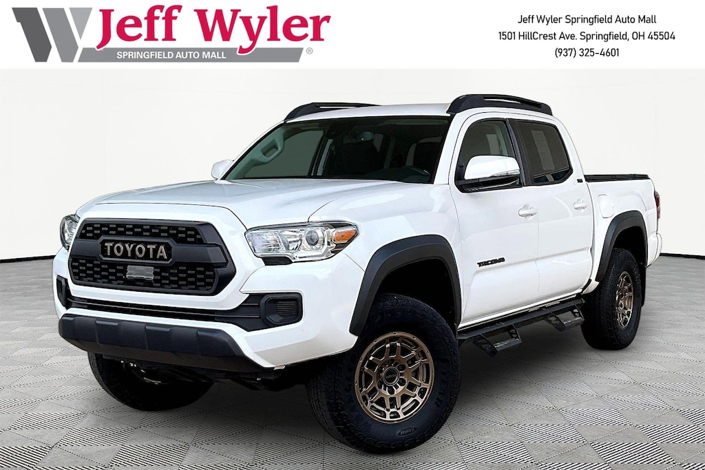 Jeff Wyler Springfield Auto Mall is very proud to offer this fantastic-looking 2023 Toyota Tacoma Trail Edition in Ice. Well equipped with: SR5 Parking Sonar & Navigation Package (Auto-Dimming Inside Rear-View Mirror, Radio: Premium Audio w/Dynamic Navigation, and Rear Parking Assist Sonar), Technology Package (Blind Spot Monitor w/Rear Cross Traffic Alert), Trail Edition (120V/400W Deck Mounted AC Power, Black Headlamp Bezel, Body Color Overfenders, Front Door Smart Key System w/Push Button Start, Heritage Grille, Leaf Trail Rear Suspension, and Power Sliding Rear Window w/Privacy Glass), 6 Speakers, ABS brakes, Air Conditioning, Alloy wheels, AM/FM radio: SiriusXM, Anti-whiplash front head restraints, Apple CarPlay/Android Auto, Auto High-beam Headlights, Auto-dimming Rear-View mirror, Automatic temperature control, Axle Ratio: 3.91, Brake assist, Bumpers: body-color, Door Edge Guard (TMS), Driver door bin, Dual front impact airbags, Dual front side impact airbags, Electronic Stability Control, Emergency communication system: Safety Connect (1-year trial), Exterior Parking Camera Rear, Fabric Seat Trim, Front anti-roll bar, Front Bucket Seats, Front Center Armrest, Front dual zone A/C, Front fog lights, Front reading lights, Front Seats, Front wheel independent suspension, Heated door mirrors, Illuminated entry, Knee airbag, Low tire pressure warning, Mudguards (TMS), Occupant sensing airbag, Outside temperature display, Overhead airbag, Overhead console, Paint Protection Film (TMS), Panic alarm, Passenger door bin, Power door mirrors, Power driver seat, Power steering, Power windows, Predator Tube Steps (TMS), Radio: Audio, Rear step bumper, Remote keyless entry, Roof Rack (TMS), Speed control, Speed-sensing steering, Split folding rear seat, Steering wheel mounted audio controls, Tachometer, Telescoping steering wheel, Tilt steering wheel, Tonneau Cover, Traction control, Trip computer, Variably intermittent wipers, and Wheels: 16" Bronze-Colored. Ask about available certifications. Used vehicles 10 years of age or newer with less than 100,000 miles are eligible for the Wyler Assurance Program, but eligible vehicles must pass our reconditioning process and multi-point inspection. Provided the vehicle passes inspection, vehicles will be eligible for the 6 month/6,000 mile limited warranty. The 6 month/6,000 mile limited warranty is NOT available on AS-IS vehicles, wholesale vehicles, lease buyback/pass-thru vehicles or un-inspected vehicles. Note that this program can also apply to vehicles where the remaining factory coverage is less than 6 months or 6,000 miles. Please check the Federal Trade Commission (FTC) Buyers guide on the vehicle for full details as to whether or not warranty coverage may apply. Contact Dealer for additional details. The Wyler Assurance 6 month/6,000 Mile limited warranty ends 6 months from the date of the Retail Purchase Agreement (BUYERS ORDER) or when the vehicle's odometer registers 6,000 additional miles to the mileage listed on the BUYERS ORDER, whichever comes first. Your Deductible - The warranty holder on your contract pays the first $100 of each covered repair.